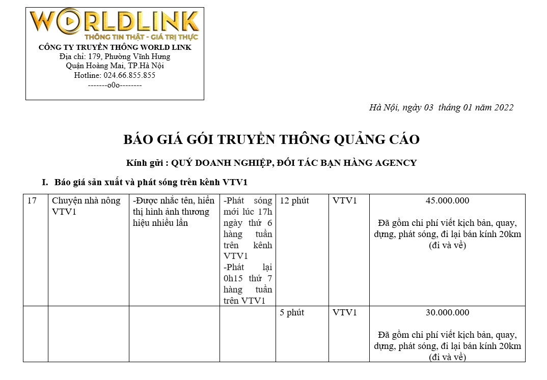 Báo giá sản xuất chương trình Chuyện nhà nông, uy tín, cạnh tranh tại Hà Nội, xem tại đây: