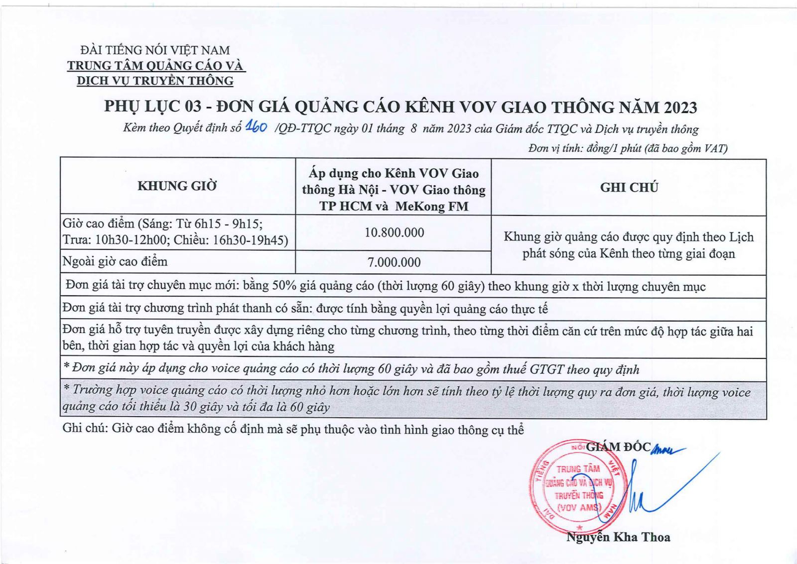 Xem thêm BẢNG GIÁ VOV GIAO THÔNG SIÊU ƯU ĐÃI ĐƯỢC CẬP NHẬT MỚI NHẤT