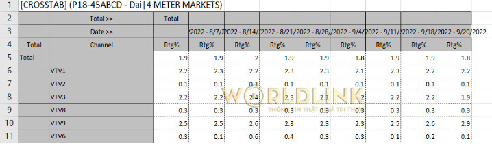 Rating kênh VTV - Đài truyền hình Việt Nam (0.1 tương đương với 1.500.000 người xem)